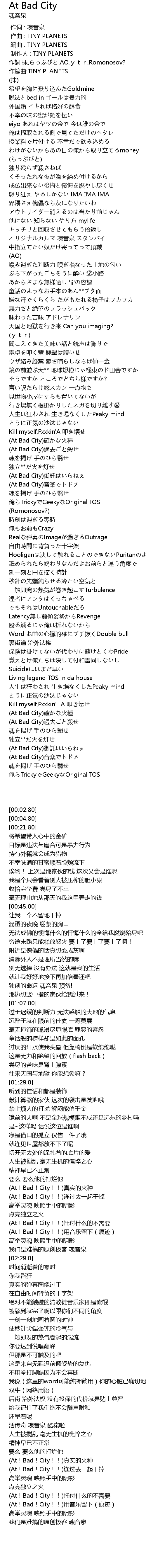 | [02:02.00] | At Bad City què huǒ zhǒng |