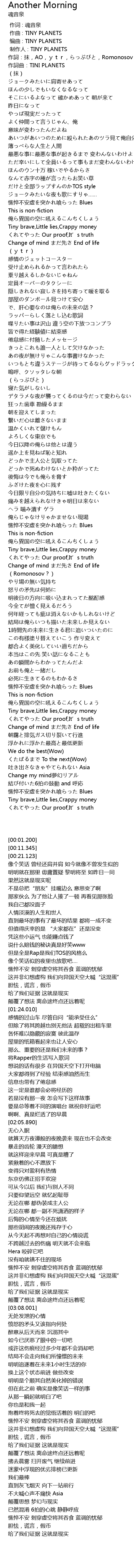 | [00:11.345] | 作詞曲:TINI PLANETS |