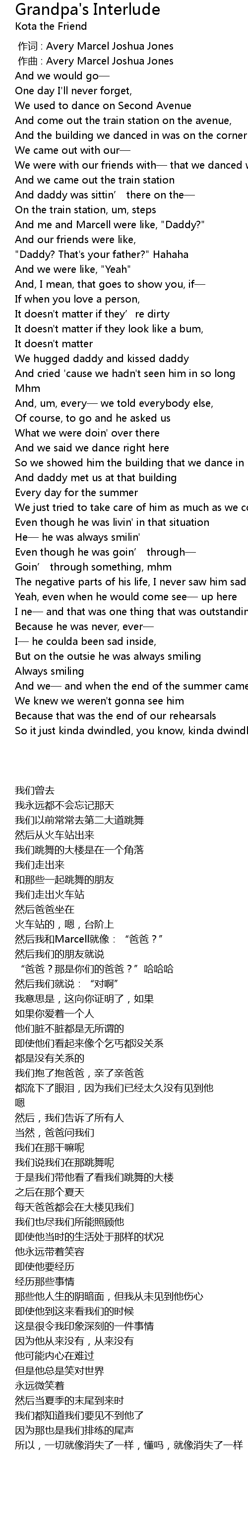 | [00:00.000] | zuo ci : Avery Marcel Joshua Jones |