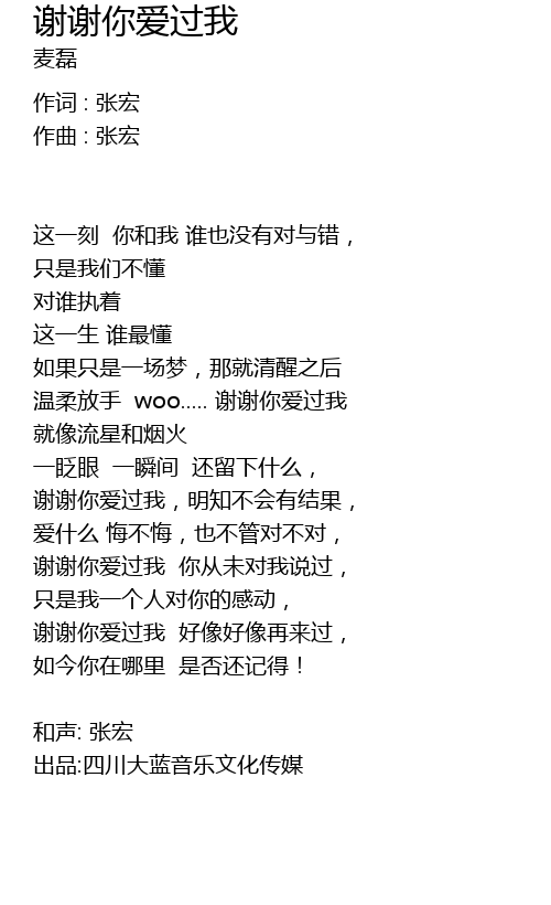 | xiè xiè nǐ ài guò wǒ nǐ cóng wèi duì wǒ shuō guò, | |