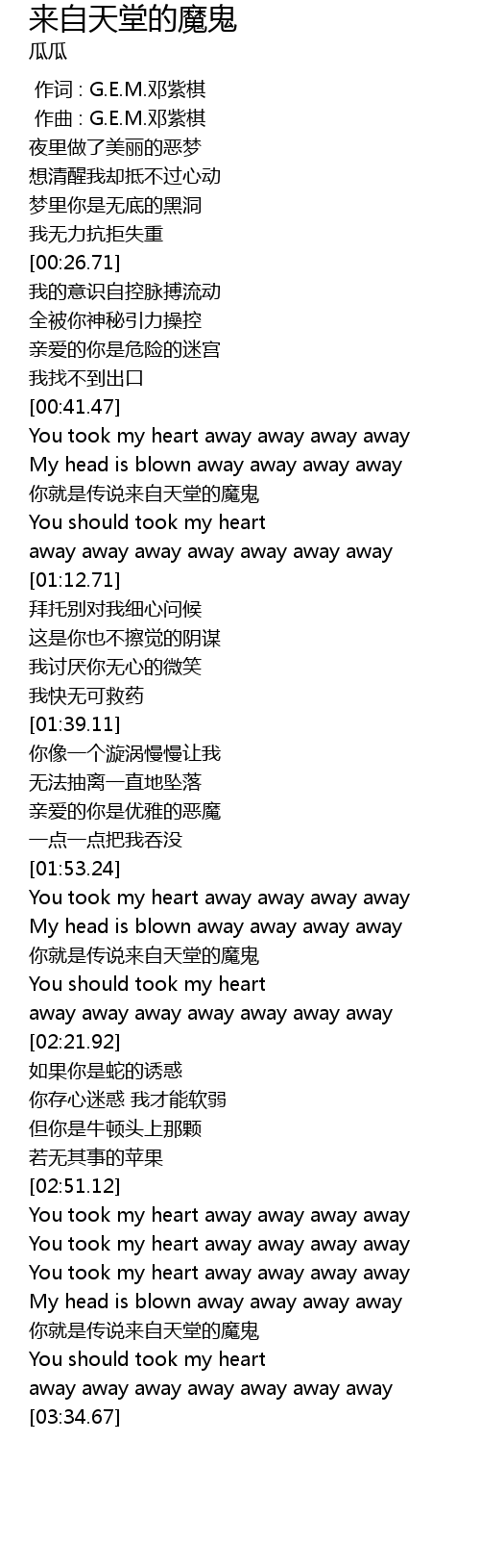 | [00:01.000] | 作曲 : G.E.M.邓紫棋 |