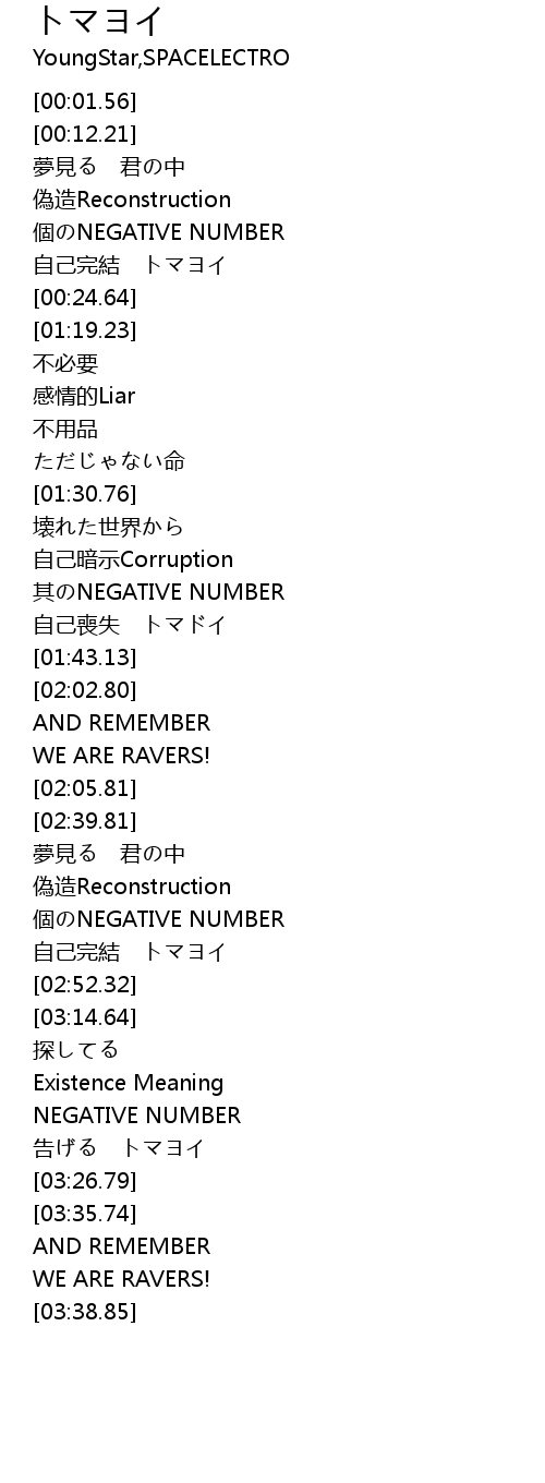 | [01:40.42] | 自己喪失 トマドイ |