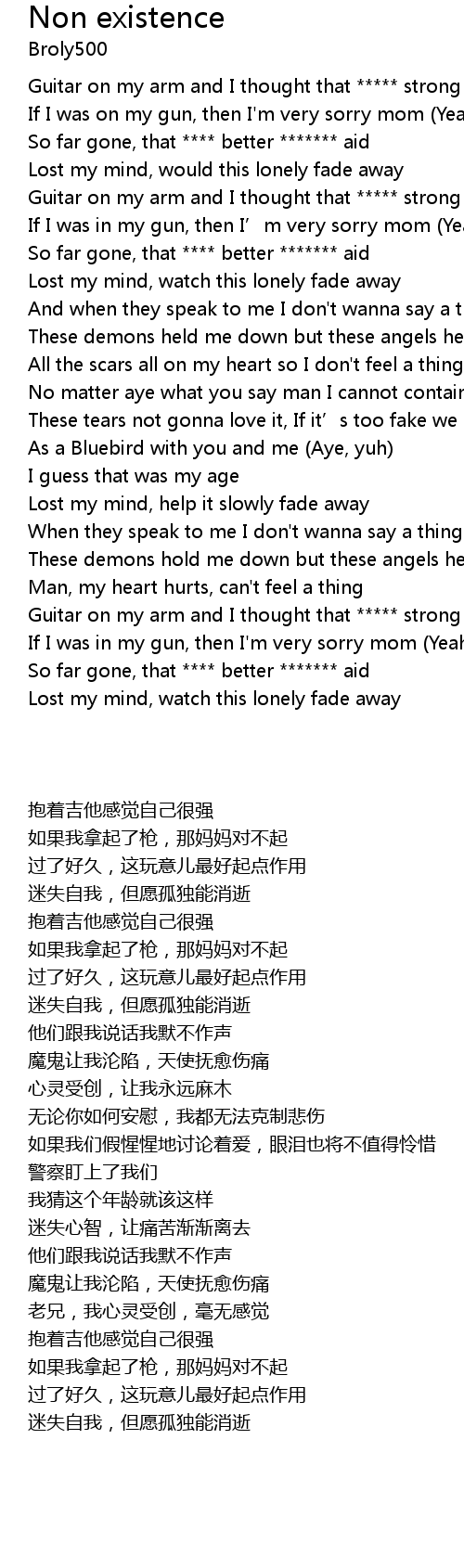 | [00:06.34] | So far gone, that **** better ******* aid |