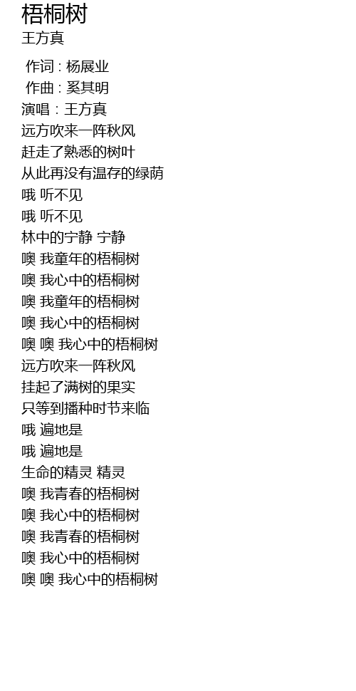 | [03:02.04] | 噢 噢 我心中的梧桐树 |
