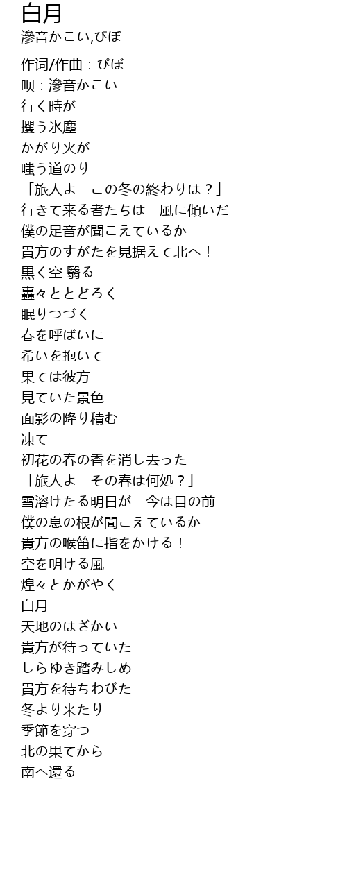 | [00:43.10] | 「旅人よ この冬の終わりは?」 |