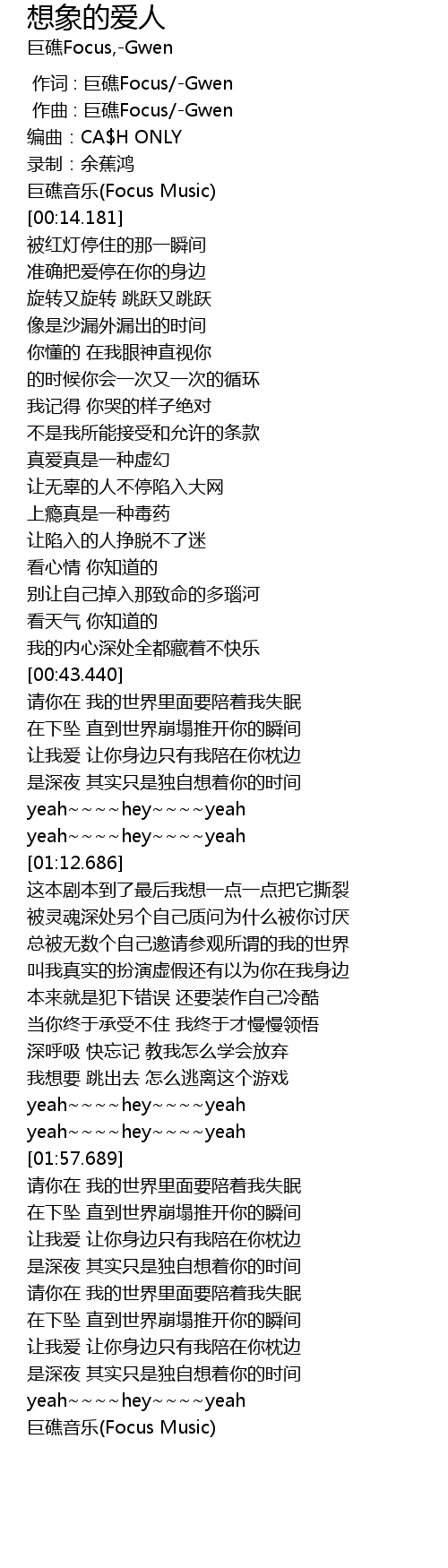 | [00:00.000] | 作词 : 巨礁Focus/-Gwen |
