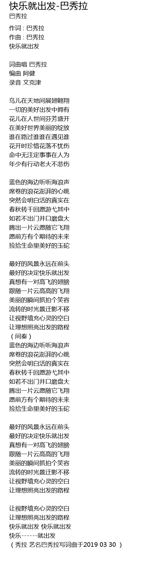 | Album | 快乐就出发 词曲唱 巴秀拉 |