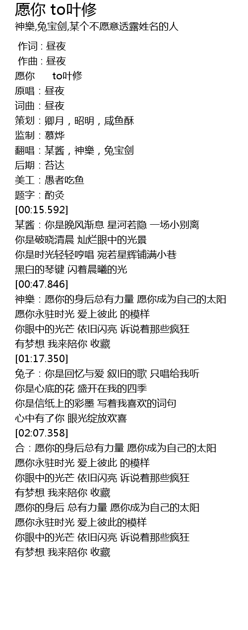 | [00:01.090] | 愿你 to叶修 |