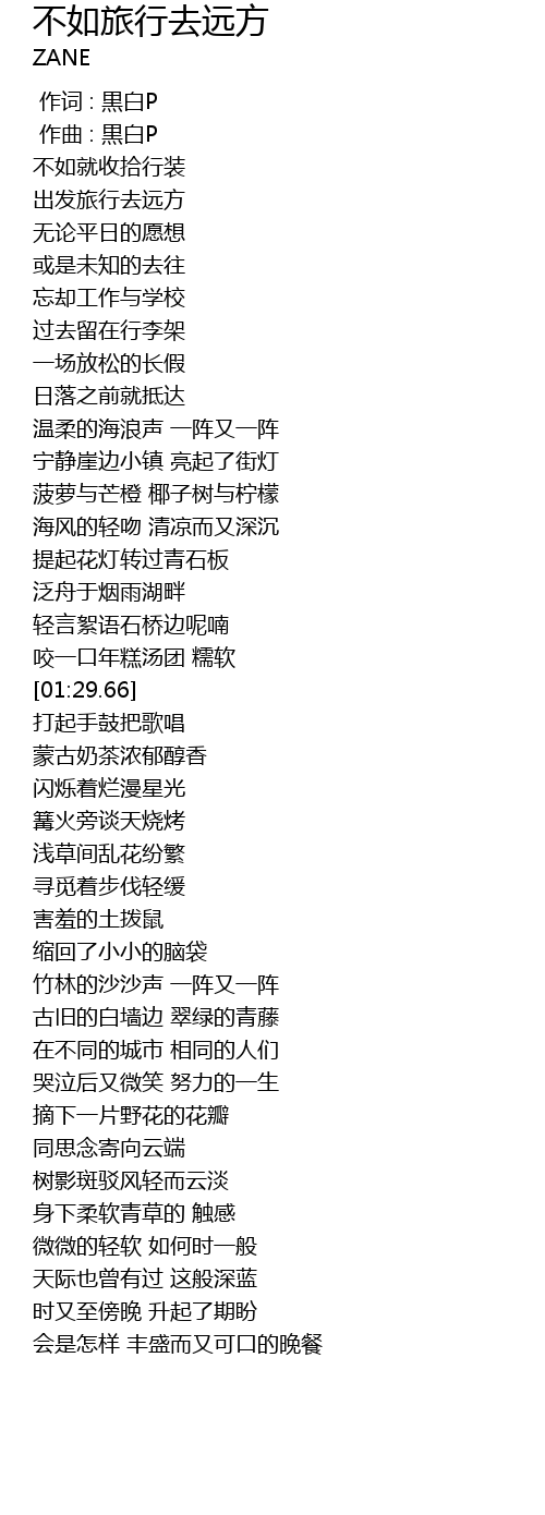 | [00:21.53] | chū fā lǚ xíng qù yuǎn fāng |