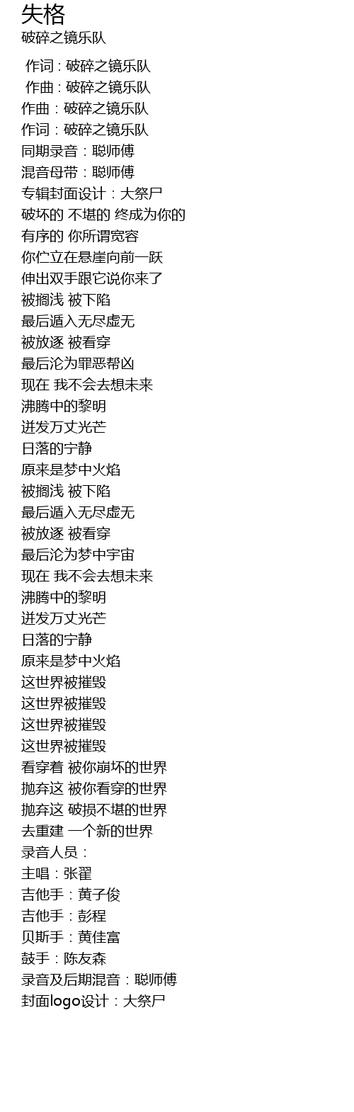 | [00:16.666] | 作曲:破碎之镜乐队 |