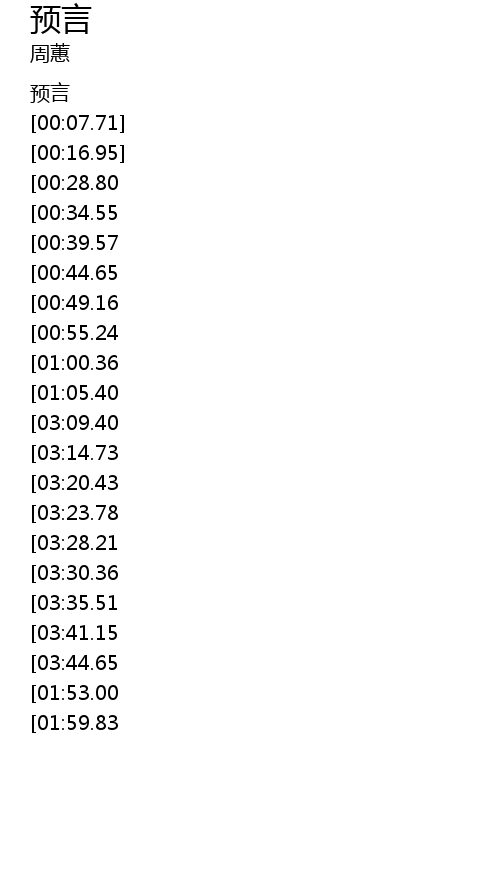 | [04:12.38][03:30.36][01:30.14] | 害怕他的预言会实现 |