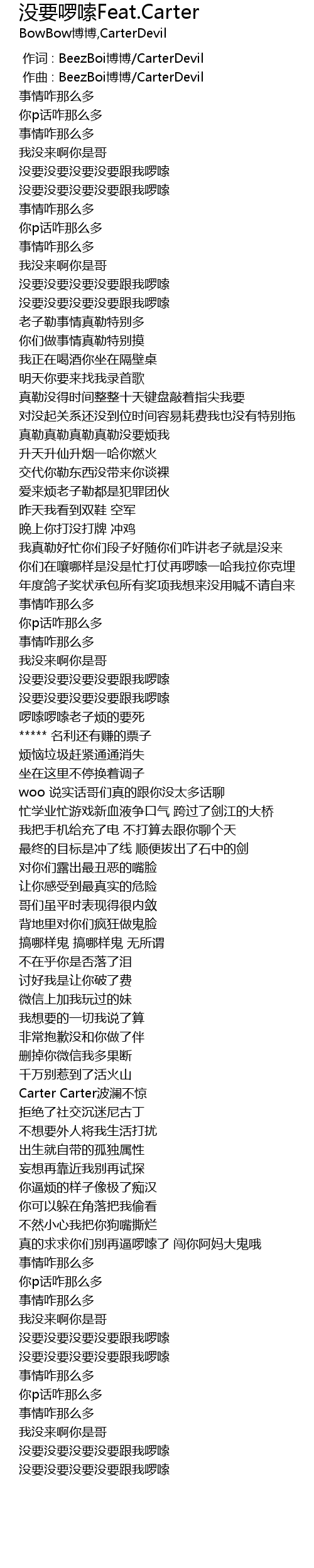 | [00:00.000] | 作词 : BeezBoi博博/CarterDevil |
