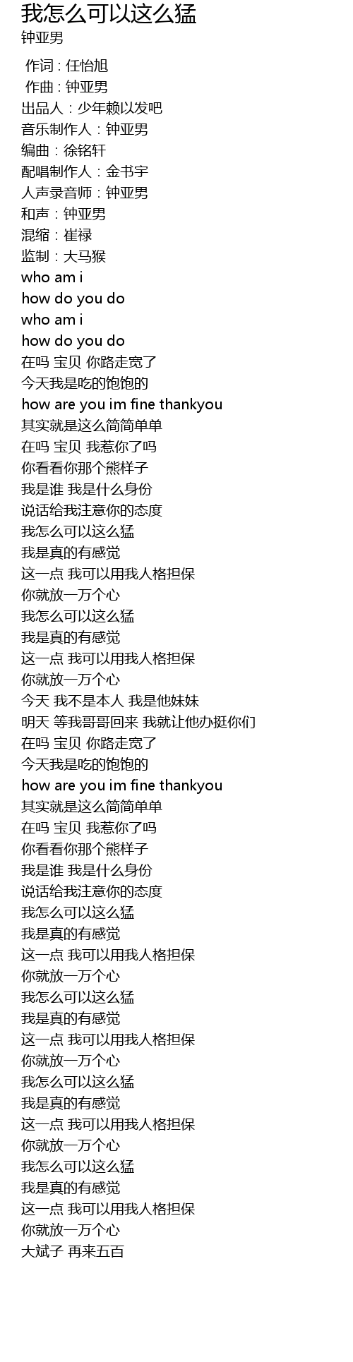 我怎么可以这么猛 wo zen me ke yi zhe me meng Lyrics