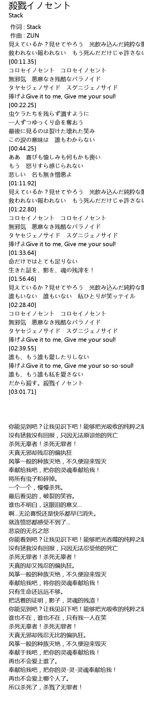 | [02:58.84] | だから殺す。殺戮イノセント |