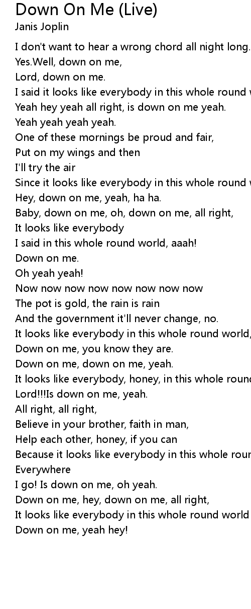 Down on me, hey, down on me, all right, |