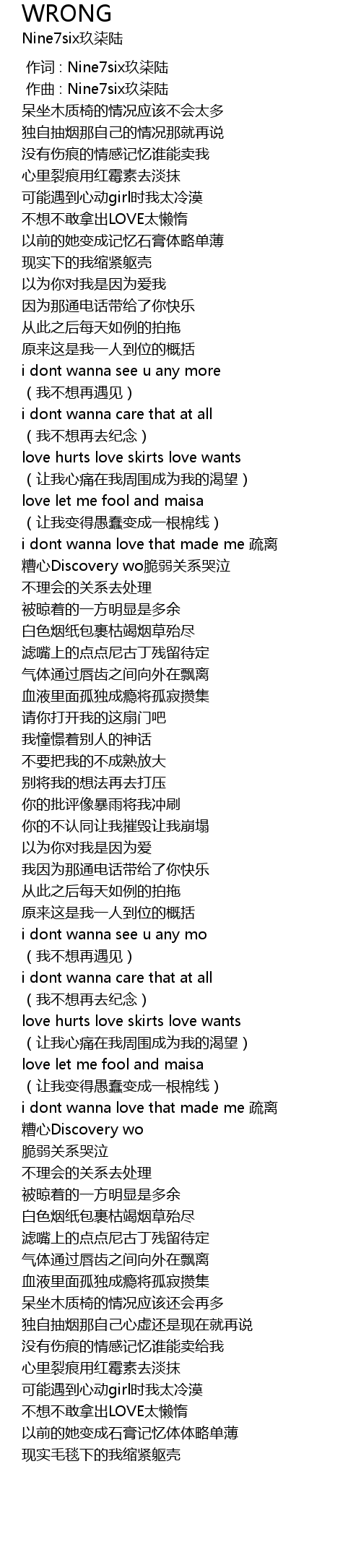 | [00:00.000] | 作词 : Nine7six玖柒陆 |