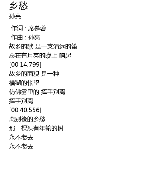 | [00:02.565] | 故乡的歌 是一支清远的笛 |