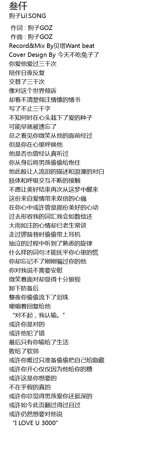 | [00:01.000] | 作曲 : 狗子GOZ |