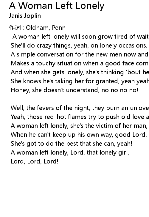 | A woman left lonely, she's the victim of her man, yes she is. | |