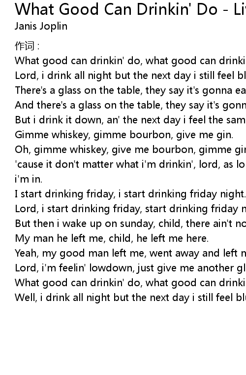 | What good can drinkin' do, what good can drinkin' do ? | |