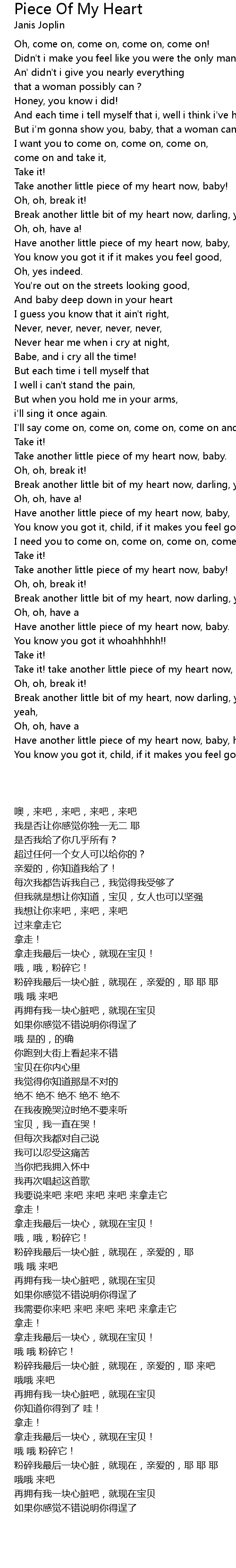 [03:34.12] Take it! take another little piece of my heart now, baby,