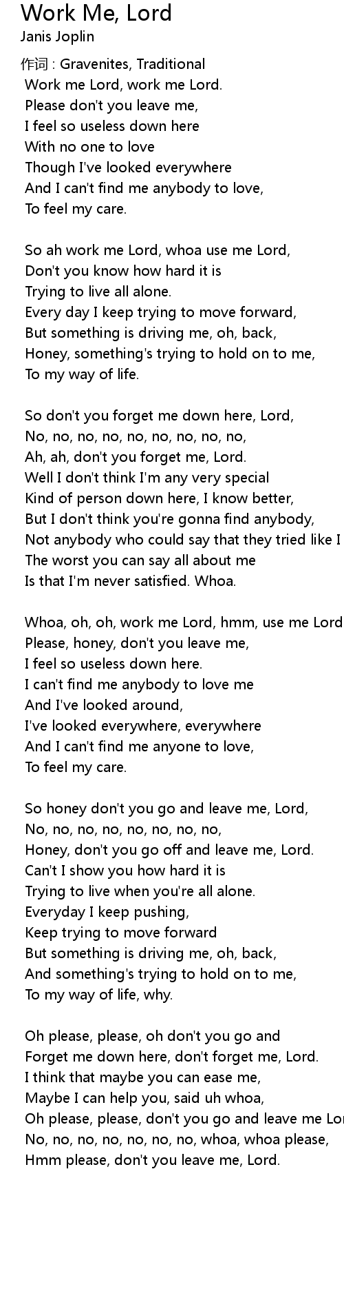| Whoa, oh, oh, work me Lord, hmm, use me Lord, | |