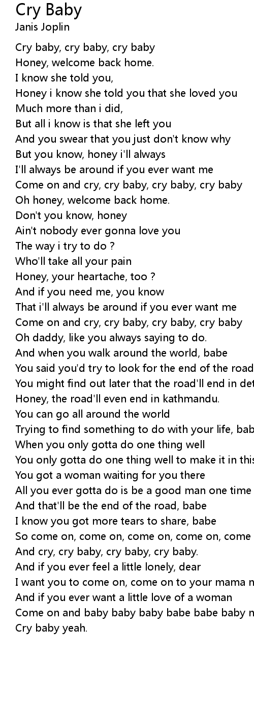 | [03:06.200] | And cry, cry baby, cry baby, cry baby. |