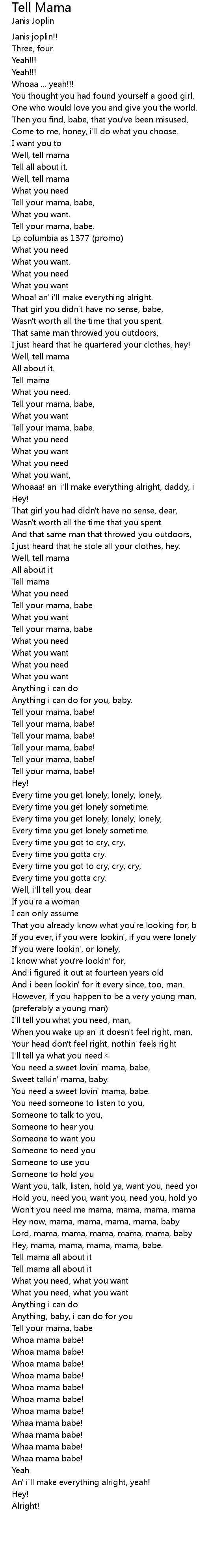| Lord, mama, mama, mama, mama, mama, baby | |