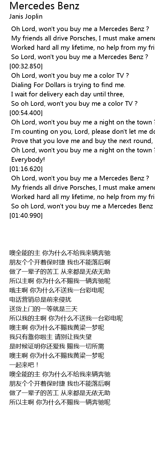 So oh Lord, won't you buy me a Mercedes Benz ? |