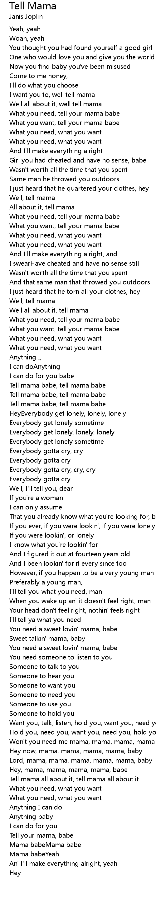 I want you to, well tell mama |