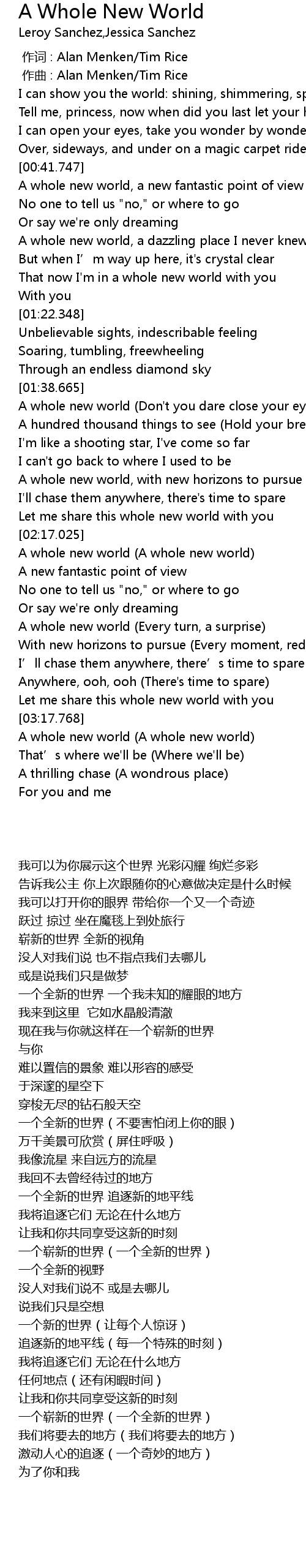 | [02:48.610] | A whole new world Every turn, a surprise |