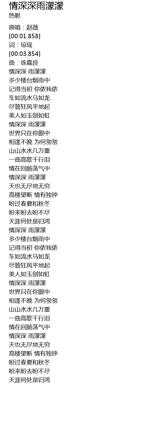 | [01:50.607] | qíng shēn shēn yǔ méng méng |