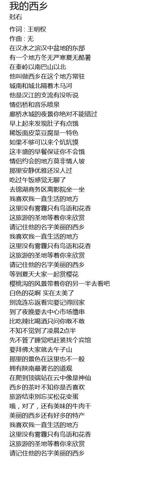| 作词 : 王明权 | |