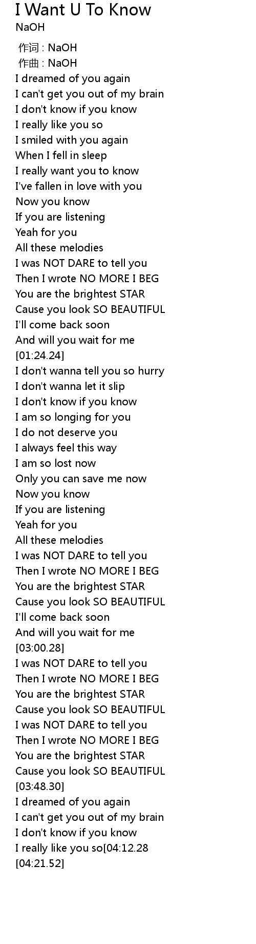| Song | I Want U To Know |