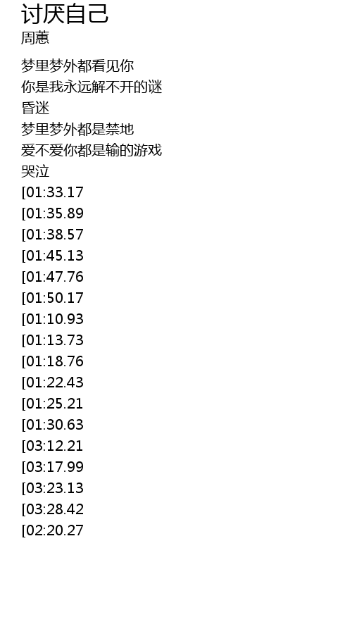 | [03:05.39][01:50.17][01:03.99] | 讨厌自己 |