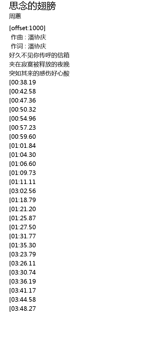| [03:21.45][01:35.30] | 乘思念的翅膀 |