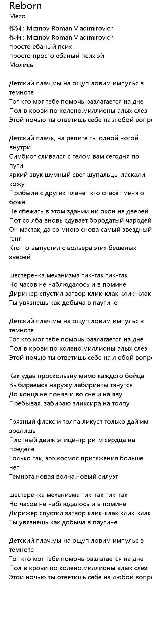 作词 : Mizinov Roman Vladimirovich |