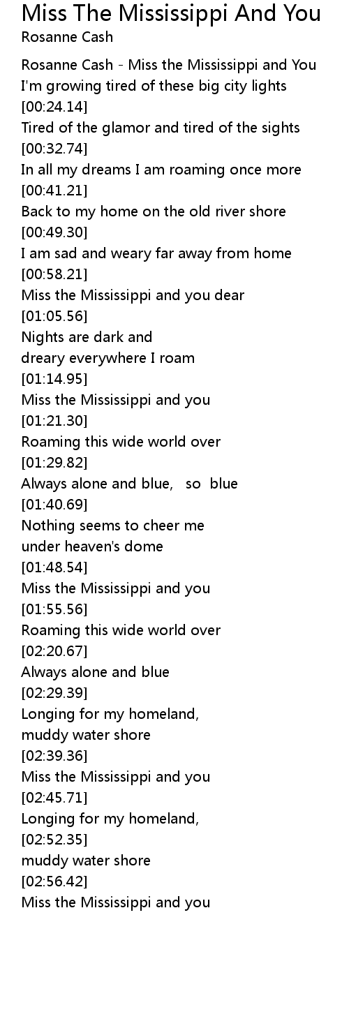 [00:00.63] Rosanne Cash - Miss the Mississippi and You