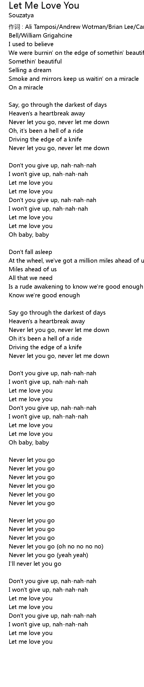 | 作词 : Ali Tamposi/Andrew Wotman/Brian Lee/Carl Rosen/Justin Bieber/Louis Bell/William Grigahcine | |