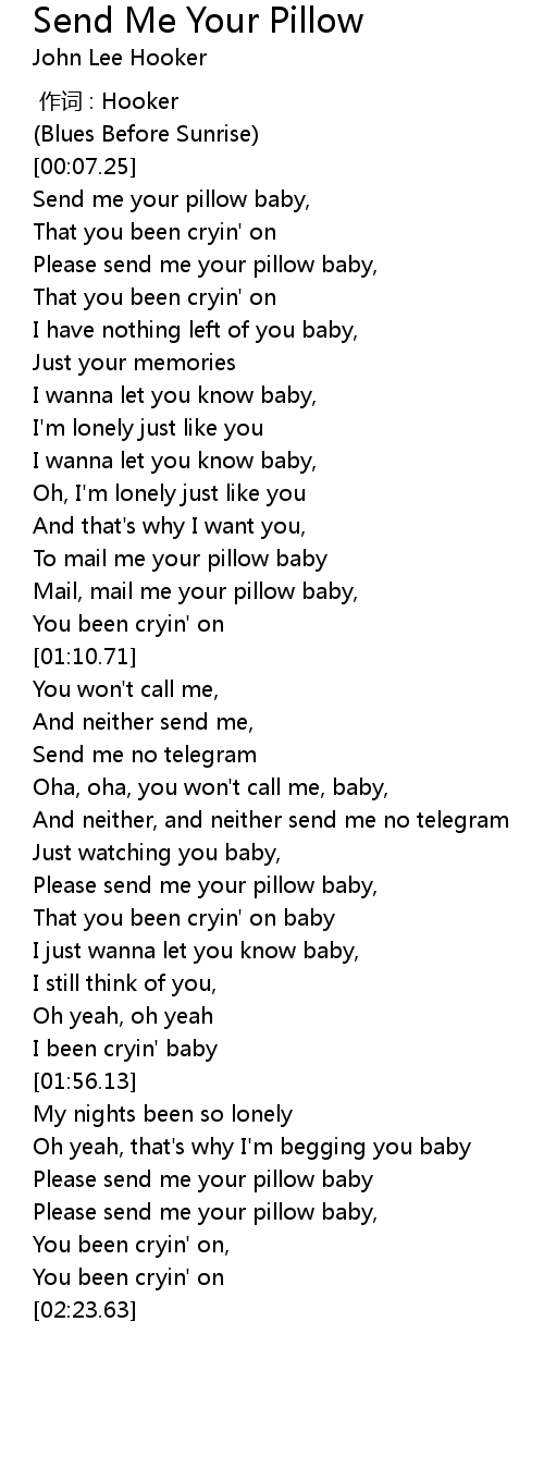 | [01:05.85] | Mail, mail me your pillow baby, |