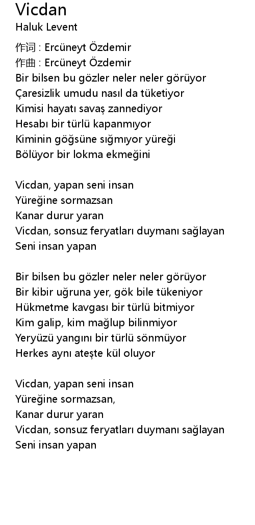 | Vicdan, sonsuz feryatlar duyman sa layan | |