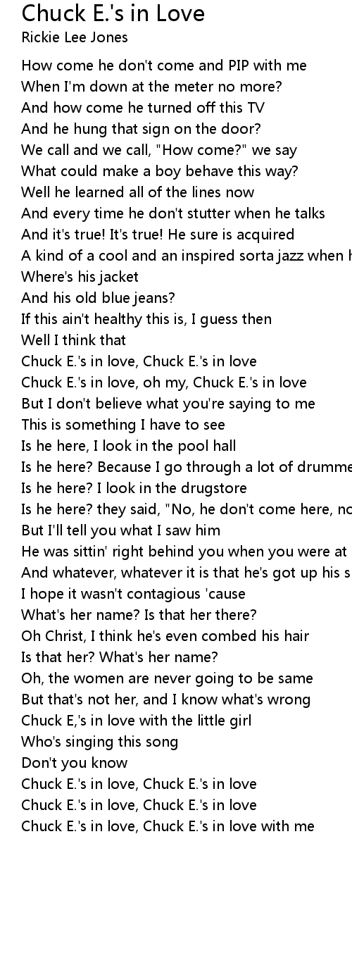Chuck E.'s in love, oh my, Chuck E.'s in love |