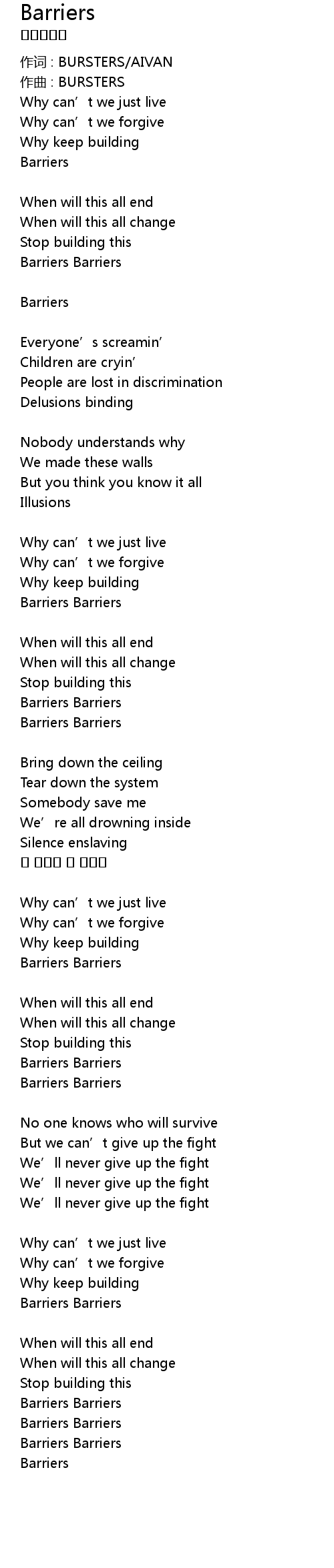 | 作词 : BURSTERS/AIVAN | |