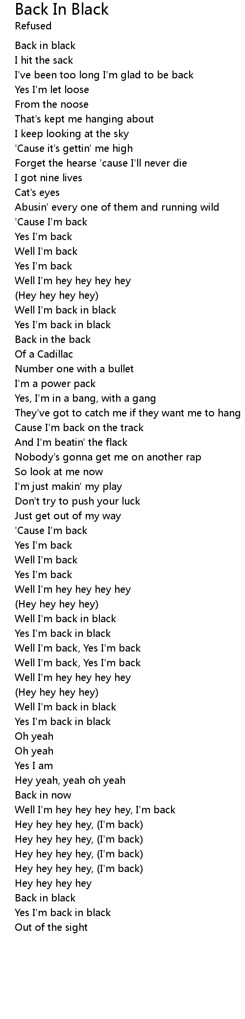 Yes I'm back in black |
