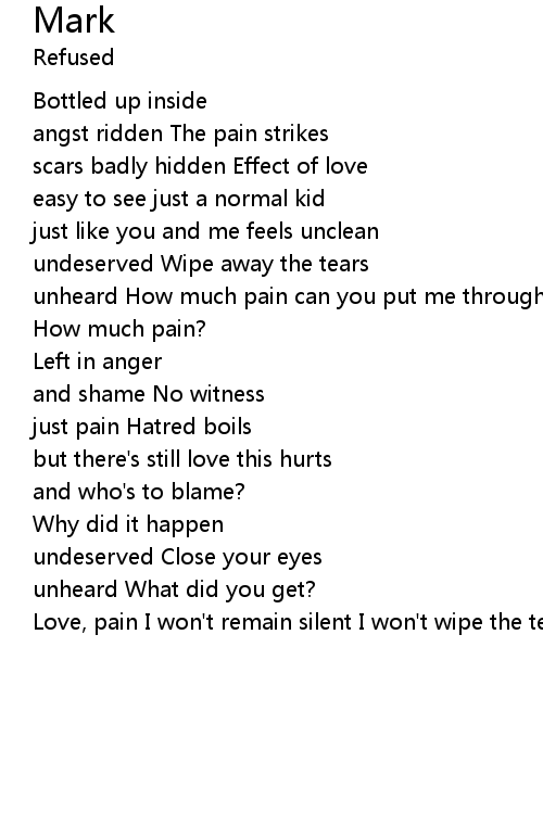 | Love, pain I won't remain silent I won't wipe the tears away |