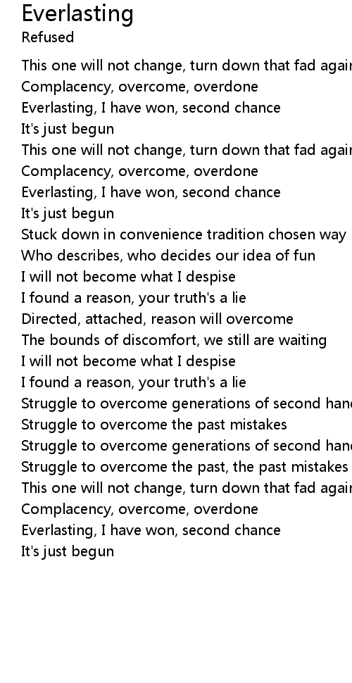 Everlasting, I have won, second chance |