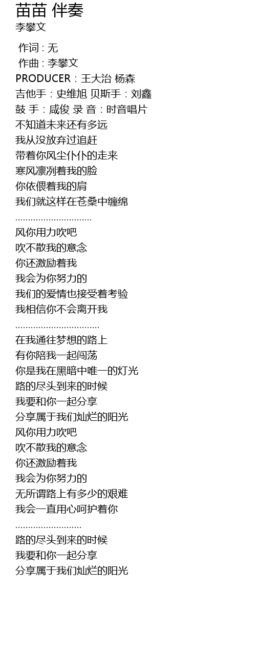 | Song | 苗苗 伴奏 |