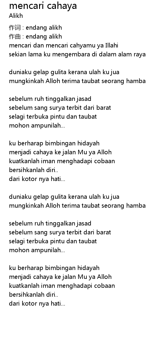 | menjadi cahaya ke jalan Mu ya Alloh | |