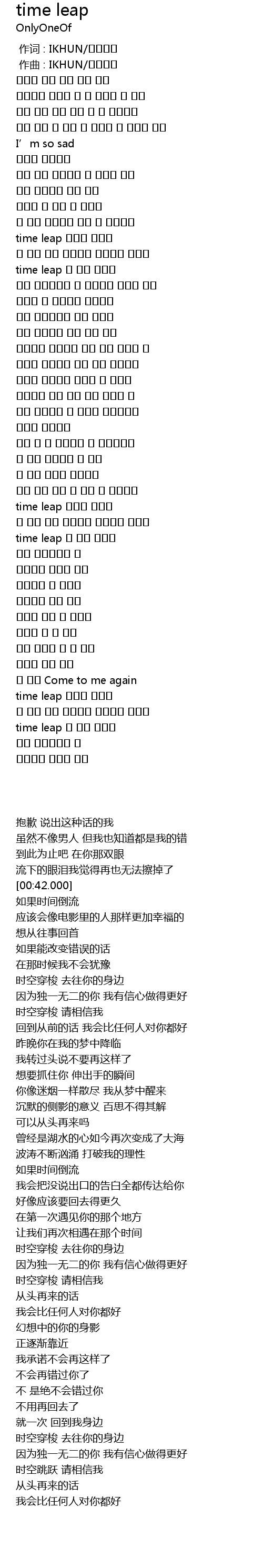| [00:01.000] | zuò qǔ : IKHUN |
