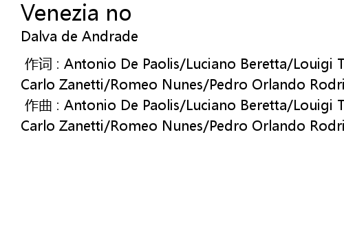 | [00:00.000] | 作曲 : Antonio De Paolis/Luciano Beretta/Louigi Torforella/Louigi Carlo Zanetti/Romeo Nunes/Pedro Orlando Rodriguez |